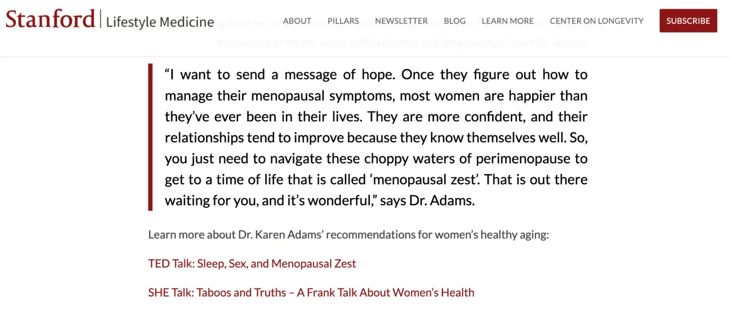 "Absolutely life changing. As a woman of a certain age I am used to my needs not being heard. It's refreshing to be validated and treated as an intelligent person who knows their own body."