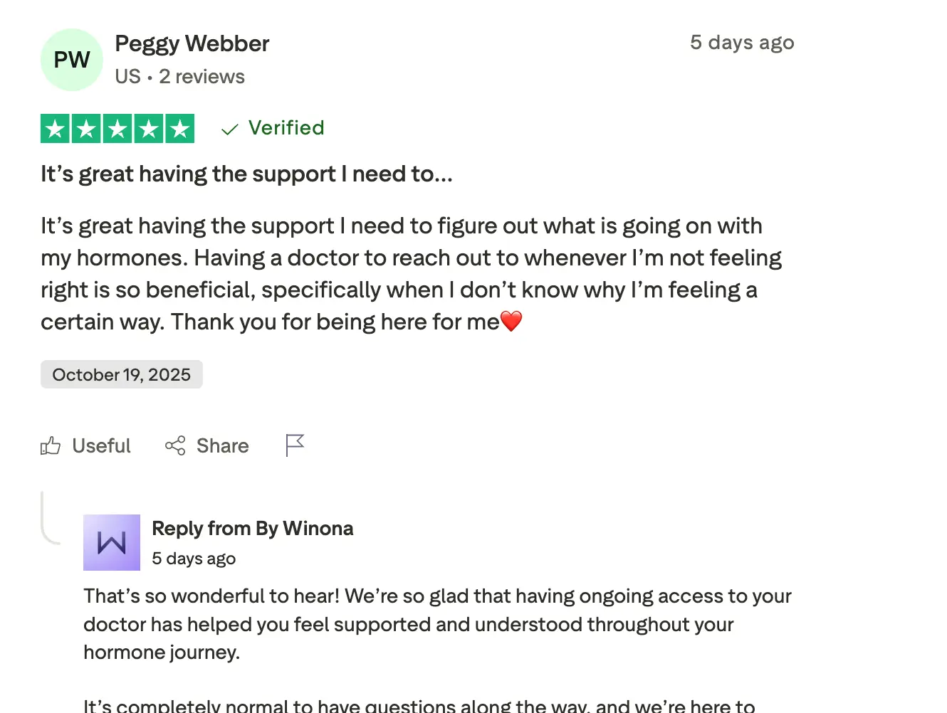 “The brain fog was ruining my confidence at work. I’d forget names in meetings and felt like I was losing control. Winona helped me find clarity again—literally and emotionally.“