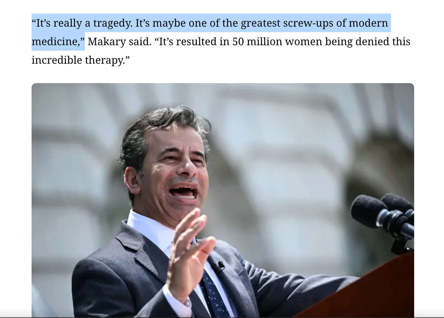 "It's really a tragedy. It's maybe one of the greatest screw-ups of modern medicine. I t's resulted in 50 million women being denied this incredible therapy."
